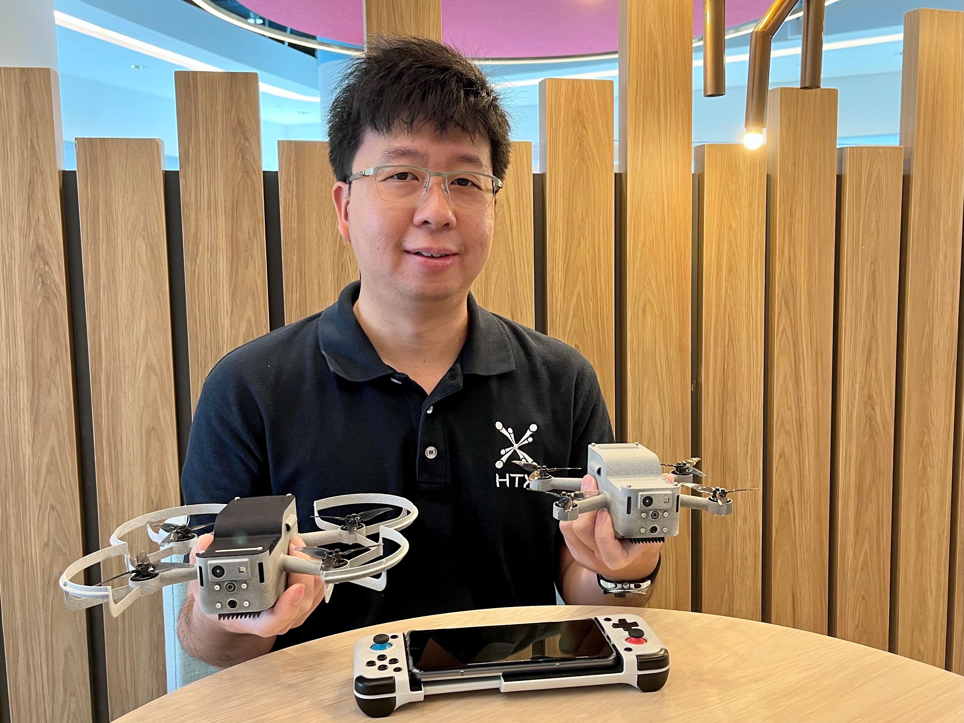 Low Hsien Meng is developing a palm-sized, cellular, beyond visual line of sight drone for indoor use. (Photo: HTX/ Michelle Lim)