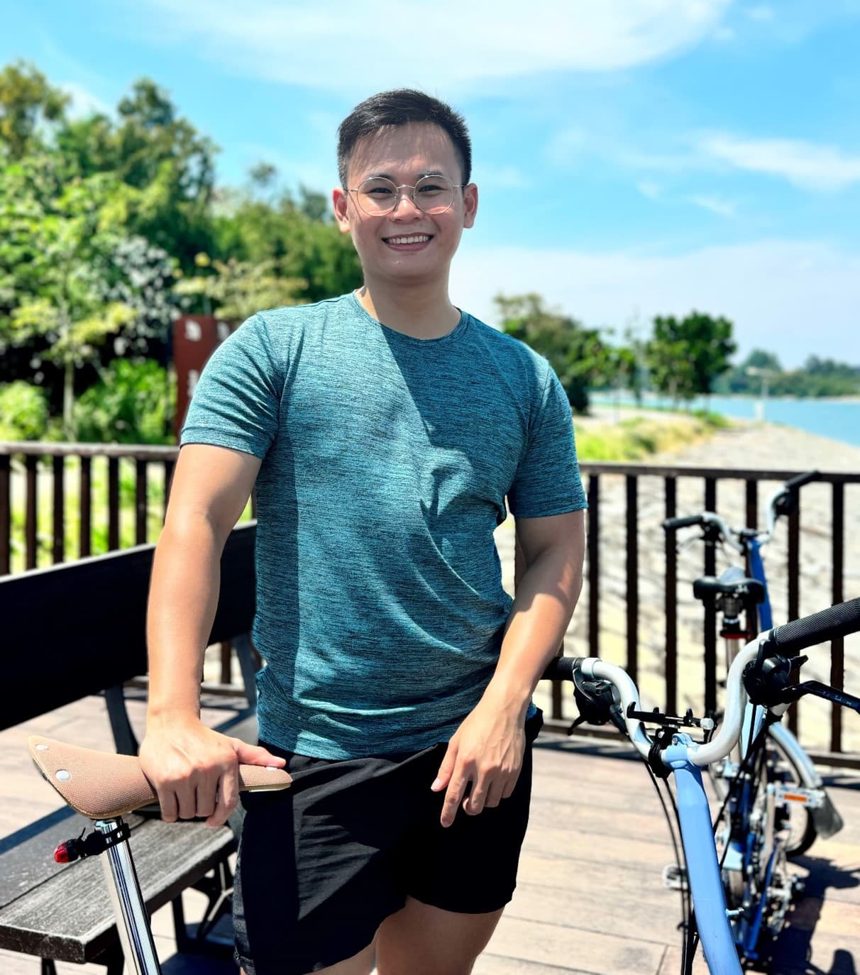 Sherwin on a break with his bike. (Photo: Sherwin Ng)