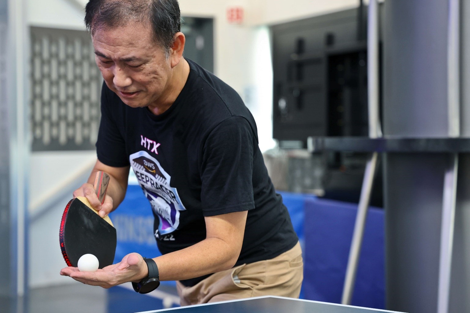 “The people from HTX’s table tennis Community of Interest whom I play with are at least 10 years younger than me. I can’t move as quickly as them. I can’t smash the ball as hard as them. I knew I needed to find a way to narrow the gap!”