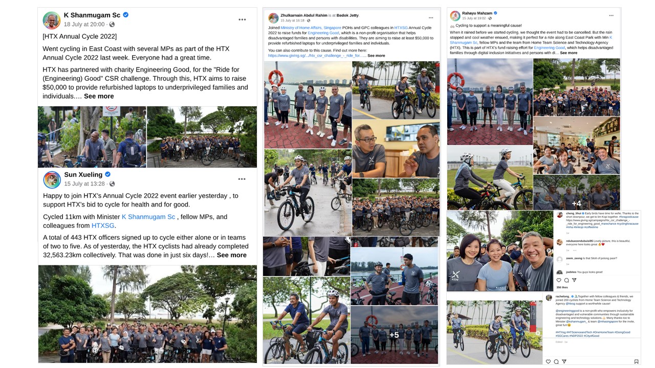 Screenshots of social media posts on HTX’s CSR Challenge from Minister, MOS Sun, Mr Zhulkarnain bin Abdul Rahim, Mr Vikram Nair, Ms Rahayu bte Mahzam, Ms Rachel Ong and Ms Cheng Li Hui