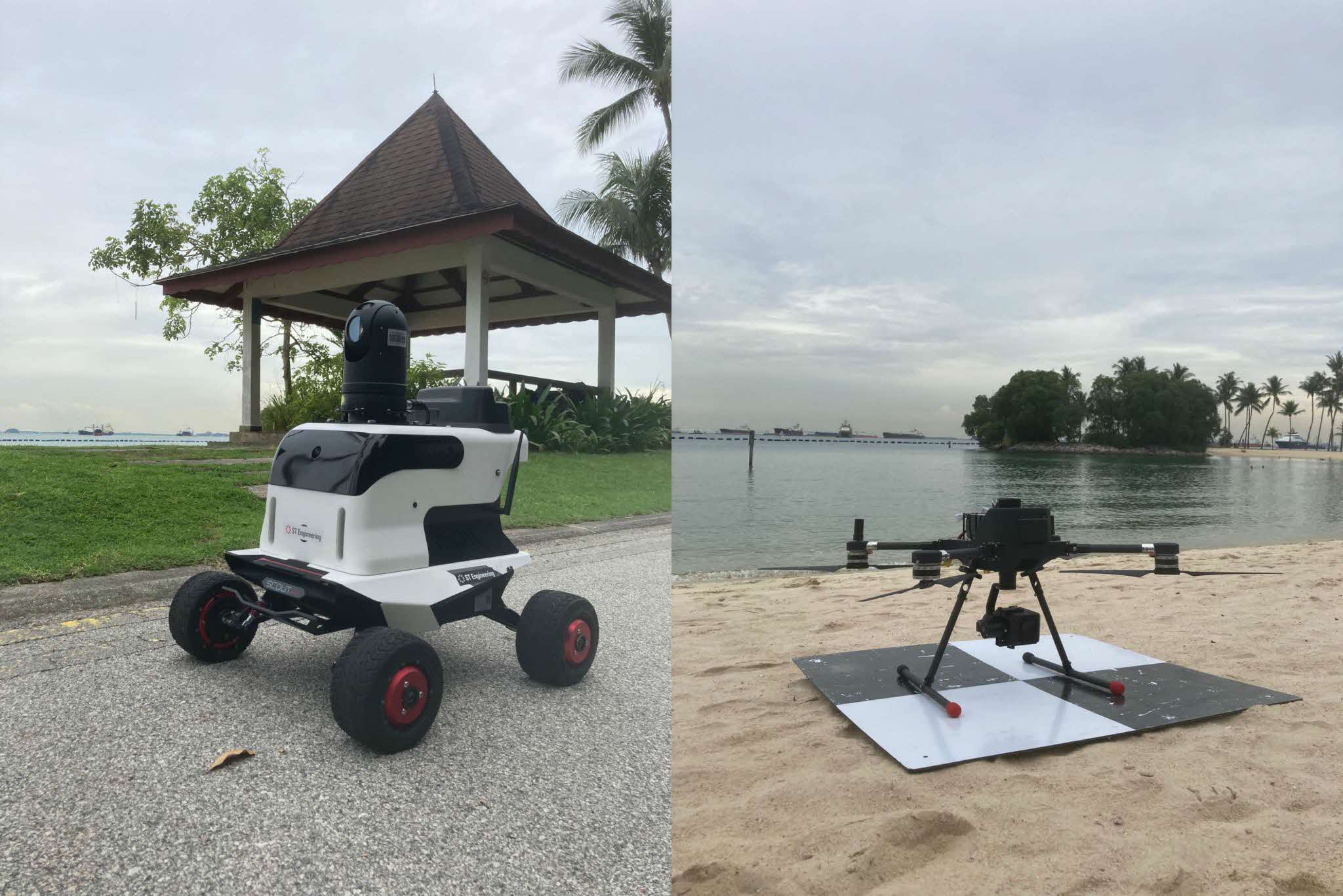 Some of the drones and robots that were trialled at the 5G@Sentosa testbed. (Photo: HTX)