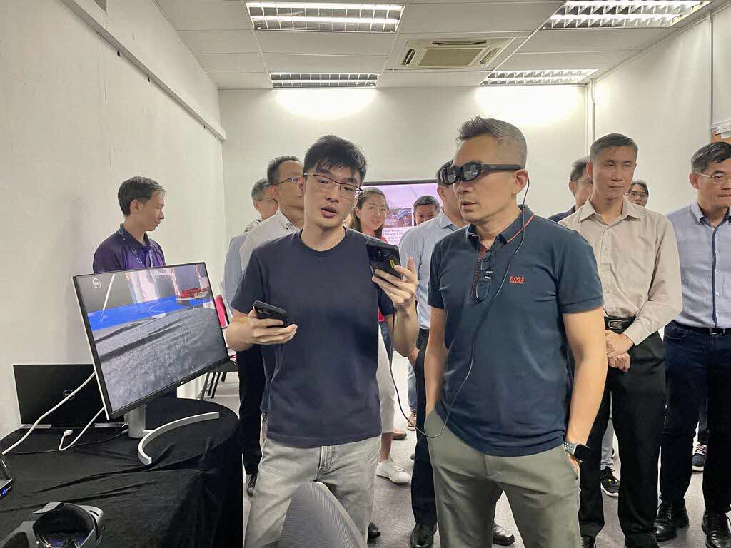 HTX’s Chief Executive, Mr Chan Tsan, and well as Home Team officers and other personnel who attended a session had the opportunity to try on the MR glasses and access the virtual command post. They could interact with the virutal map of Sentosa to see how ground robots and drones can be operated remotely. (Photo: HTX)