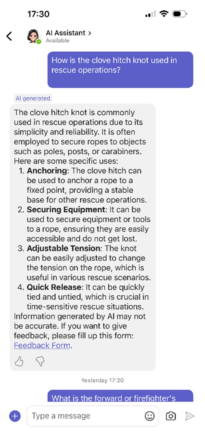 - SCDF AI Assistant: An AI chatbot exclusively designed for SCDF's workforce. It provides seamless access to intranet wiki files and official documents across HQ departments, enabling Fire Rescue Specialists, Emergency Medical Services personnel, and other SCDF officers to instantly retrieve critical information through natural language queries on their mobile devices.