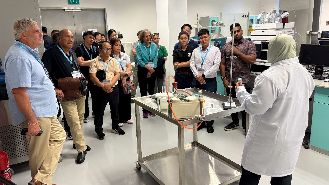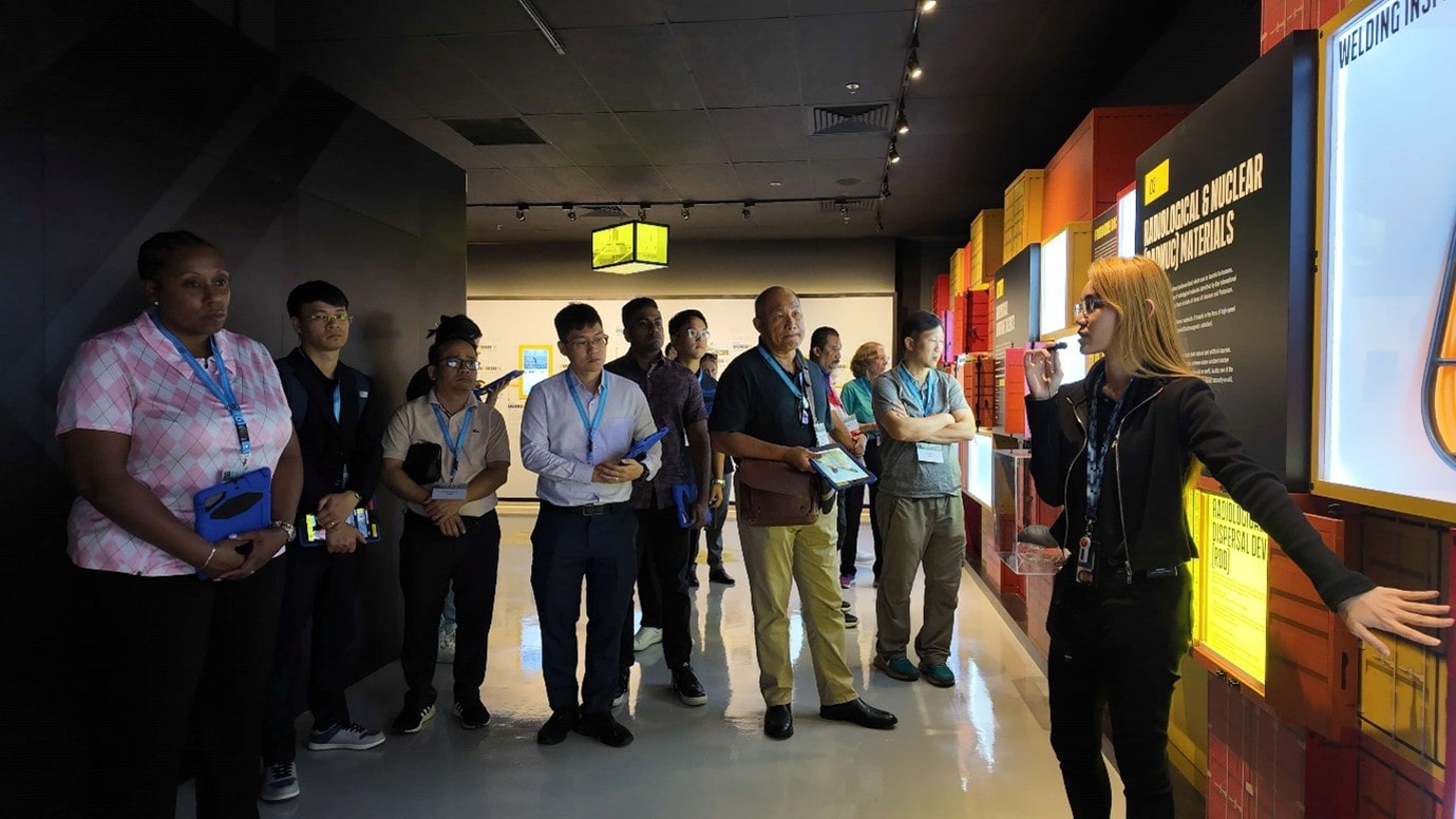 International experts tour HTX’s Scientific Demonstration Suite (SDS), which showcases chemical, biological warfare agents and explosive weapons, while guided by Kemberly Kay, a CBRNE scientist from HTX. (Photo: HTX)