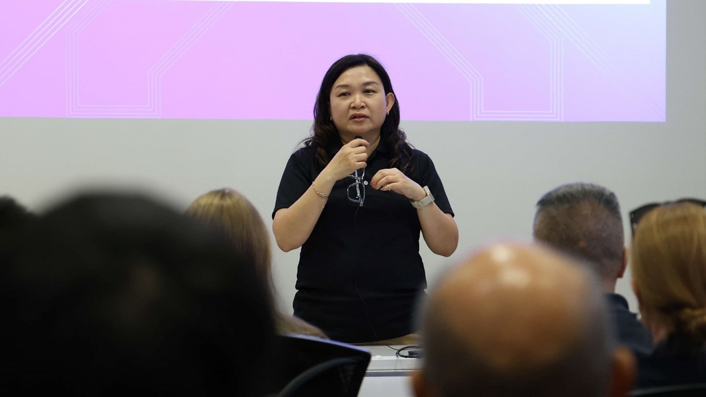 Director of HTX’s CBRNE CoE, May Ong, introduces the CoE’s specialisations in her welcome speech. (Photo: HTX)