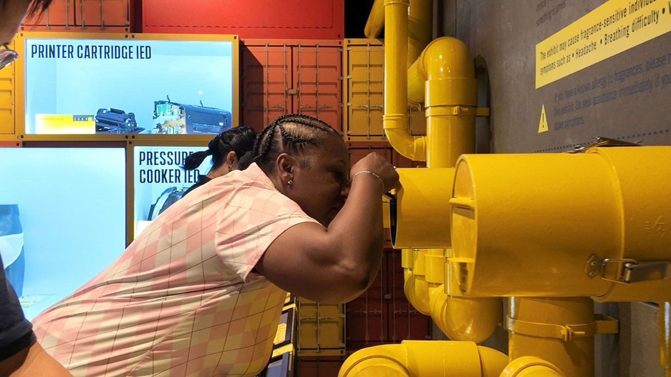 U.S. guest Michelle Anderson experiencing the olfaction of chemical warfare agents at the scent station at SDS. (Photo: HTX)