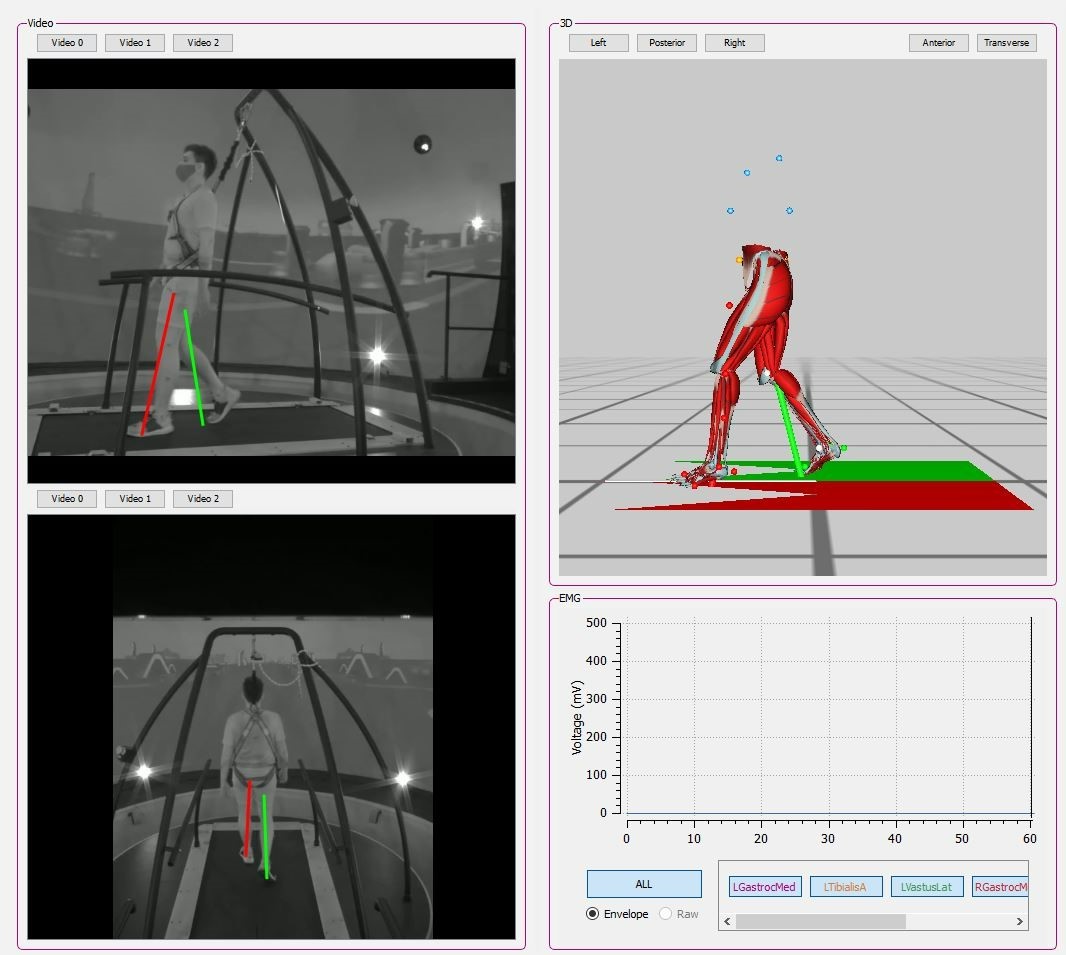 High speed cameras, 3D motion capture systems and force plates are also employed to collect the biomechanical data on joint kinematics (angles and movements), joint kinetics (ground reaction forces), and muscle activity. (Image Credit: HTX)